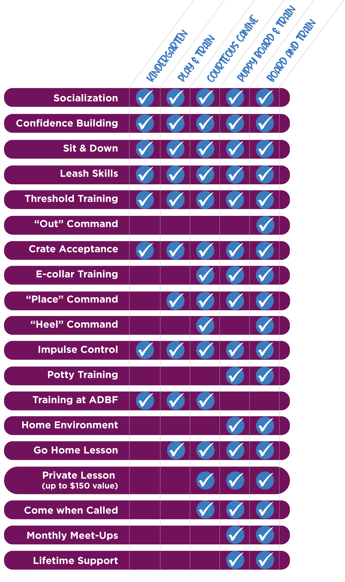 New Puppy? This program is for you! Puppy Kindergarten is a professional approach to puppy socialization, foundational obedience skills, and having FUN! Setting your puppy up to be comfortable with other dogs and people, as well as having solid obedience skills starts at the beginning. Want to have a dog that’s ready to take on any adventure? Start by sending them to Kindergarten!